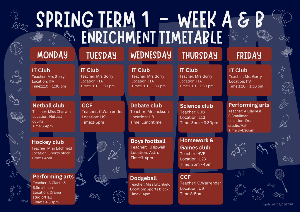 Enrichment means much more than that which happens in the mainstream curriculum. A key priority of the Academy is to develop student’s cultural capital by providing links to the wider world, encouraging our students to be aware of the exciting range of life experiences available to them. By providing these opportunities for students to engage in activities outside the classroom, we hope to encourage them to see themselves as young people entitled to and able to take advantage of, culturally enriching experiences through their lives.