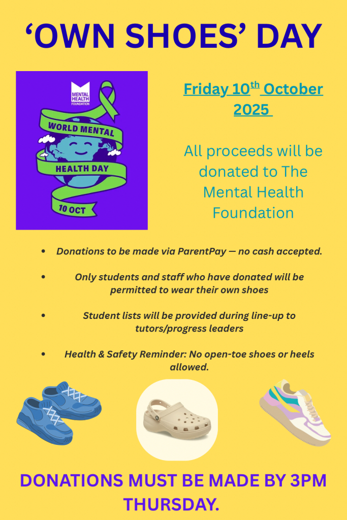 This Friday, weβre giving you the chance to swap your regular school shoes for any footwear you like β trainers, boots or even crocs!